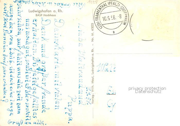 73063933 alte Postkarte Ludwigshafen Rhein BASF Hochhaus Springbrunnen postalisch gelaufen Erhaltung siehe scans [FriedD77] KatCode: 11110007314000