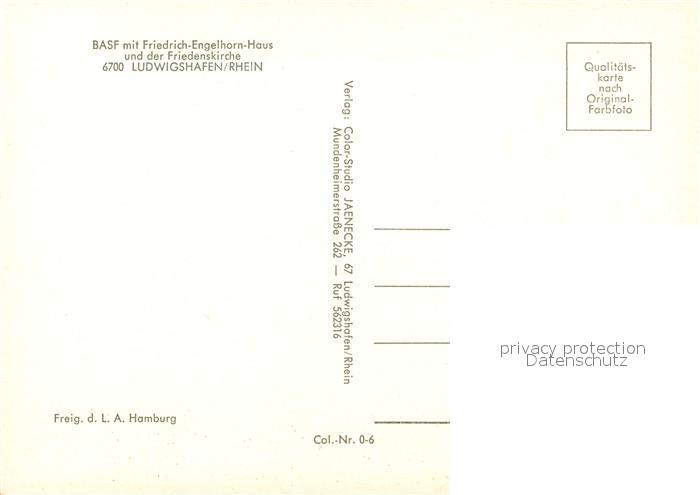73085255 Ludwigshafen Rhein BASF mit Friedrich Engelhorn Haus und der Friedenskirche Fliegeraufnahme postalisch nicht gelaufen Erhaltung siehe scans [FriedD77] KatCode: 11110007314000