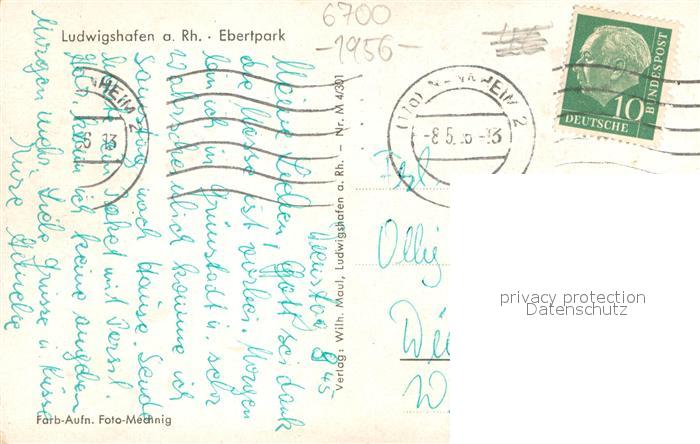 73694625 alte Postkarte Ludwigshafen Rhein Ebertpark Bogenschuetze Skulptur postalisch gelaufen Erhaltung siehe scans [FriedD77] KatCode: 11110007314000