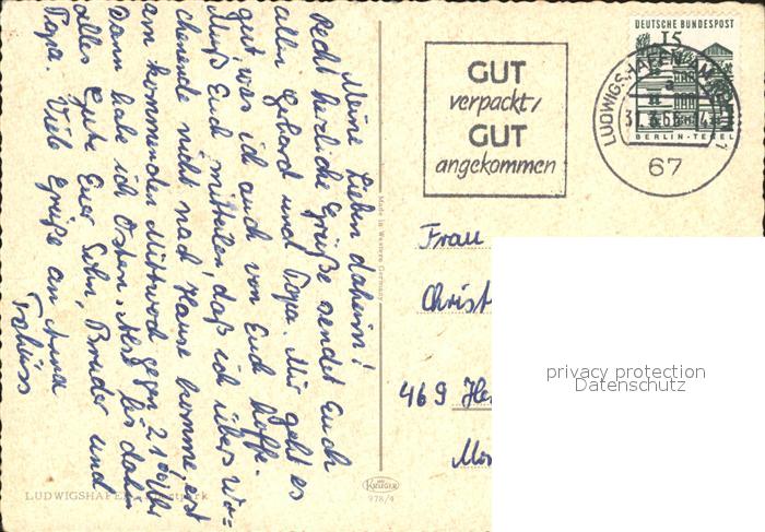 72364933 alte Postkarte Ludwigshafen Rhein Parkanlagen postalisch gelaufen Erhaltung siehe scans KatCode: 11110007314000
