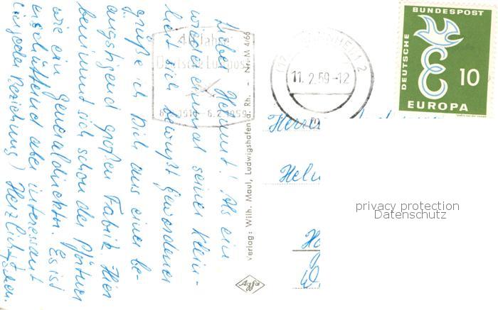 73833238 alte Postkarte Ludwigshafen Rhein Strasse mit Pfalzbau Herz Jesukirche Reinschule Stadthaus Nord Hauptbahnhof Ebertpark postalisch gelaufen Erhaltung siehe scans [WerneD78] KatCode: 11110007314000