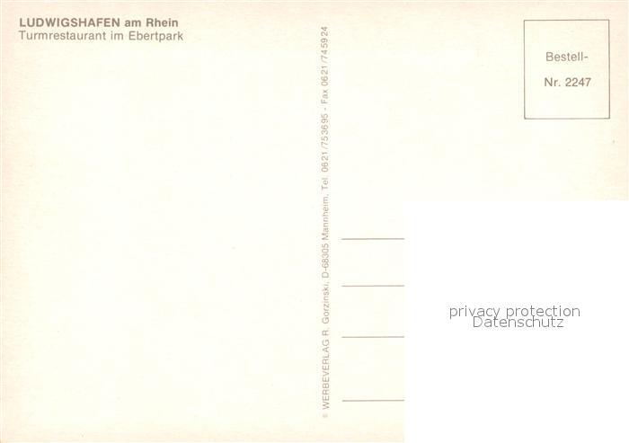 73251600 Ludwigshafen Rhein Turmrestaurant Stadtpark postalisch nicht gelaufen Erhaltung siehe scans [KathaD81] KatCode: 11110007314000