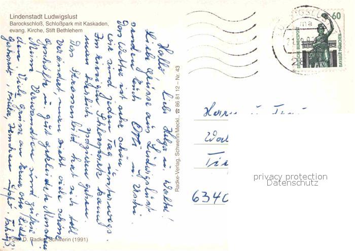 72848241 alte Postkarte Ludwigslust Barockschloss Schlosspark Kaskaden Stift Bethlehem Kirche postalisch gelaufen Erhaltung siehe scans [KathaD81] KatCode: 11110013054069