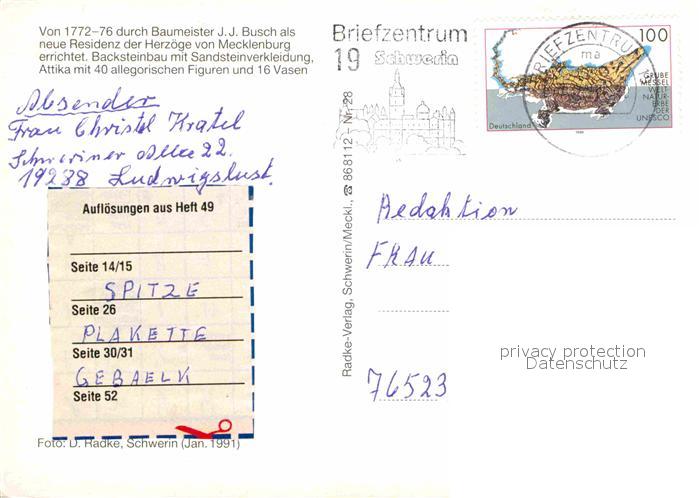 72758353 alte Postkarte Ludwigslust Barockschloss postalisch gelaufen Erhaltung siehe scans [KathaD81] KatCode: 11110013054069