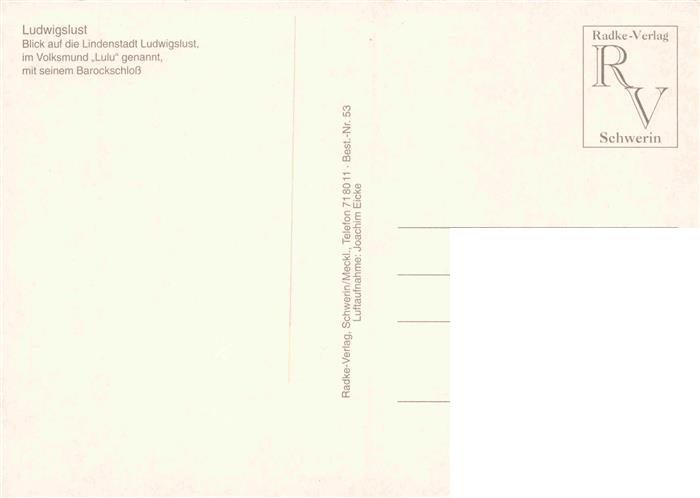 74141569 Ludwigslust Mecklenburg-Vorpommern Schloss postalisch nicht gelaufen Fliegeraufnahme Erhaltung siehe scans [IrynaD87] KatCode: 11110013054069