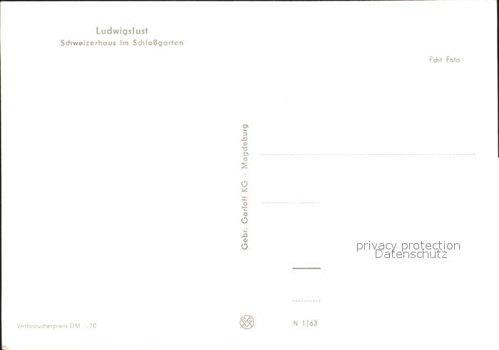 72092160 Ludwigslust Schweizerhaus im Schlossgarten postalisch nicht gelaufen Erhaltung siehe scans KatCode: 11110013054069