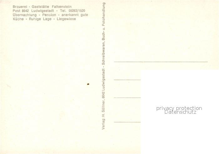 73541270 Ludwigsstadt Brauerei Gaststaette Falkeinstein postalisch nicht gelaufen Erhaltung siehe scans [KathaD81] KatCode: 11110009476152