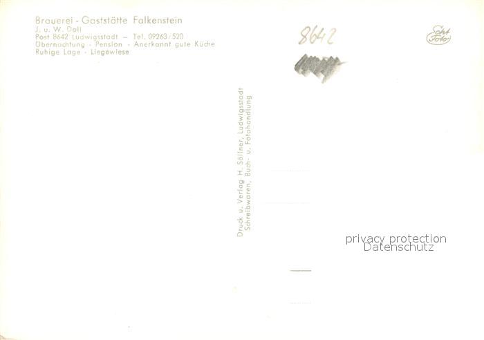 73095966 Ludwigsstadt Brauerei Gaststaette Falkenstein postalisch nicht gelaufen Erhaltung siehe scans [KathaD81] KatCode: 11110009476152