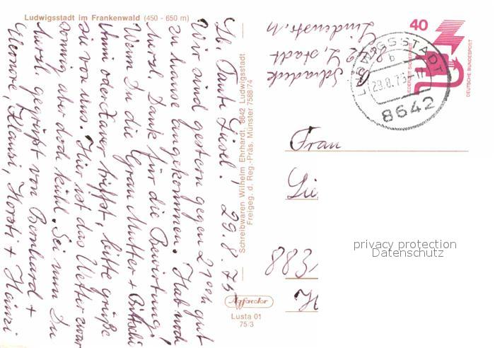 72928933 alte Postkarte Ludwigsstadt Frankenwald Fliegeraufnahme postalisch gelaufen Erhaltung siehe scans [FriedD77] KatCode: 11110009476152