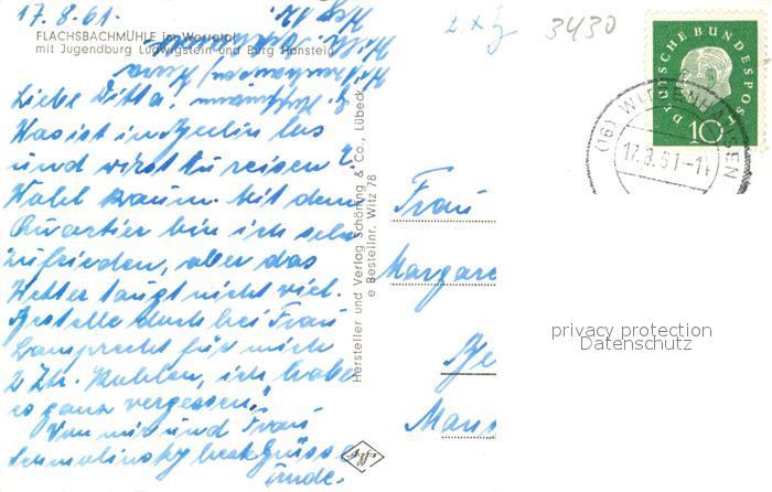 43350762 alte Postkarte Ludwigstein Werleshausen Flachsbachmuehle Jugendburg Burg Hanstein postalisch gelaufen Erhaltung siehe scans [KathaD81] KatCode: 11110006636016
