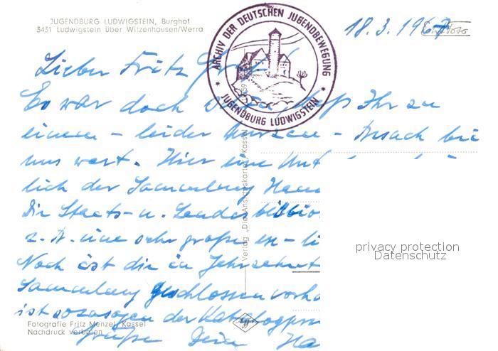 73334718 alte Postkarte Ludwigstein Werleshausen Jugendburg Ludwigstein Burghof Fachwerkhaus postalisch gelaufen Erhaltung siehe scans [FriedD77] KatCode: 11110006636016