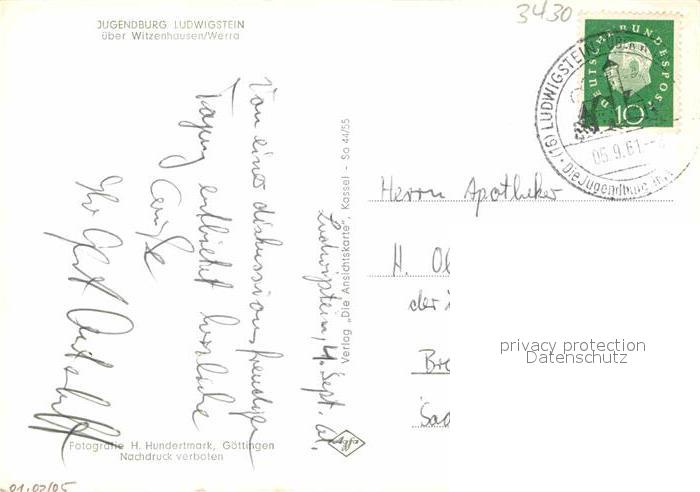 72915332 alte Postkarte Ludwigstein Werleshausen Jugendburg Ludwigstein postalisch gelaufen Erhaltung siehe scans [WerneD78] KatCode: 11110006636016