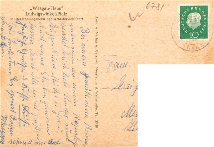 73890092 alte Postkarte Ludwigswinkel Wasgau Haus Muettererholungsheim der AWO postalisch gelaufen Erhaltung siehe scans [WerneD78] KatCode: 11110007340029