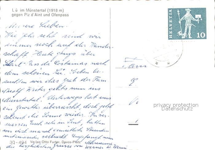 11641439 alte Postkarte Lue Ortsansicht mit Kirche Blick gegen Piz d Aint und Ofenpass postalisch gelaufen KatCode: 11470100325144