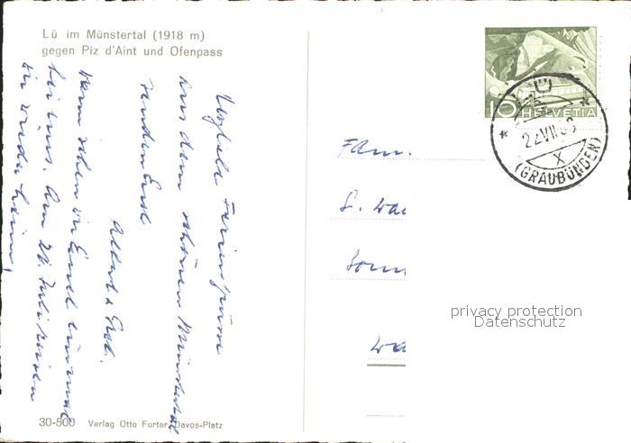 11641234 alte Postkarte Lue Ortsansicht mit Kirche Piz d Aint Ofenpass postalisch gelaufen Erhaltung siehe scans KatCode: 11470100325144