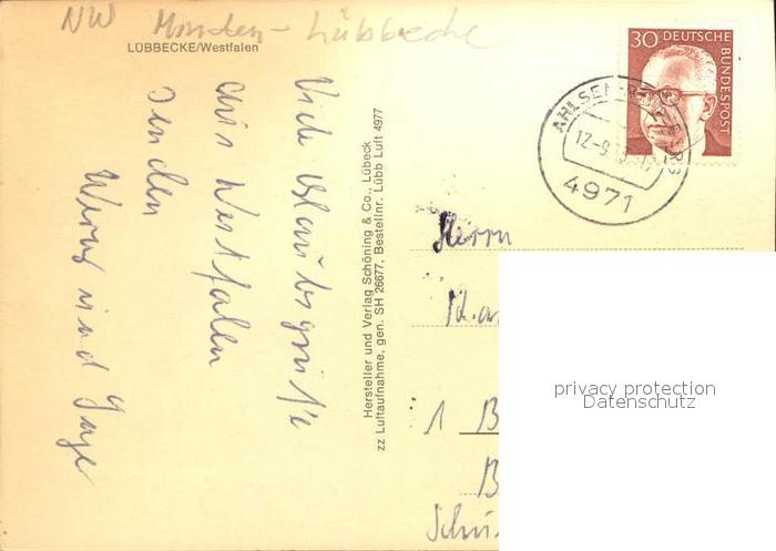 72299380 alte Postkarte Luebbecke Westfalen Fliegeraufnahme postalisch gelaufen Erhaltung siehe scans KatCode: 11110005770020
