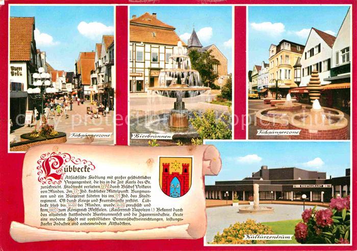 72653505 alte Postkarte Luebbecke Westfalen Fussgaengerzone Bierbrunnen Kulturzentrum postalisch gelaufen Erhaltung siehe scans [WerneD78] KatCode: 11110005770020