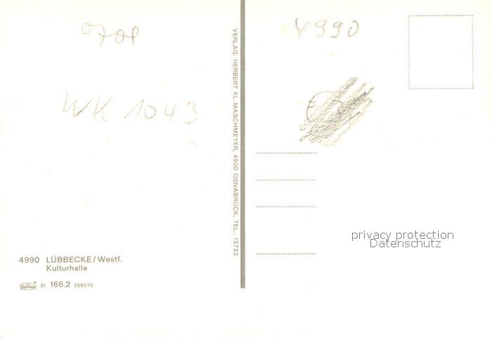 73658885 Luebbecke Westfalen Kulturhalle Restaurant postalisch nicht gelaufen Erhaltung siehe scans [FriedD77] KatCode: 11110005770020
