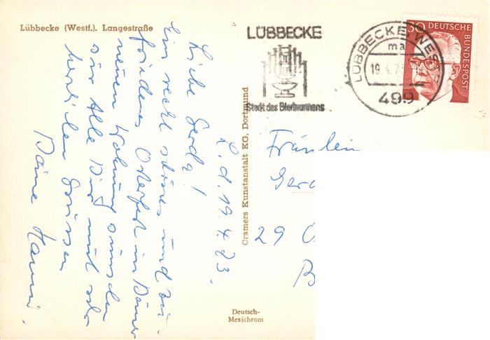 73896723 alte Postkarte Luebbecke Westfalen Langestrasse postalisch gelaufen Erhaltung siehe scans [WerneD78] KatCode: 11110005770020