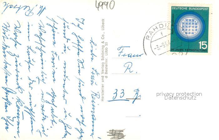 73694042 alte Postkarte Luebbecke Westfalen Rathaus Panorama Wartturm Wiehengebirge postalisch gelaufen Erhaltung siehe scans [WerneD78] KatCode: 11110005770020