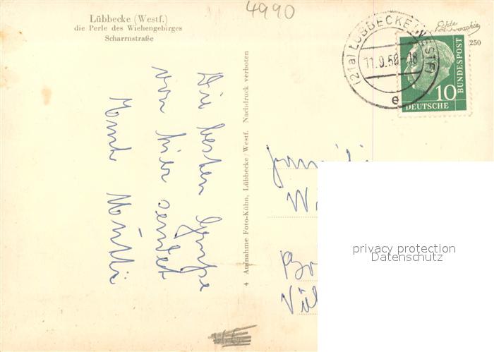 73695078 alte Postkarte Luebbecke Westfalen Scharrnstrasse postalisch gelaufen Erhaltung siehe scans [WerneD78] KatCode: 11110005770020
