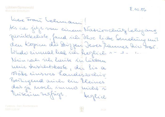73914781 Luebben Spreewald Blick zum Schlossturm postalisch nicht gelaufen Erhaltung siehe scans [WerneD78] KatCode: 11110012061316