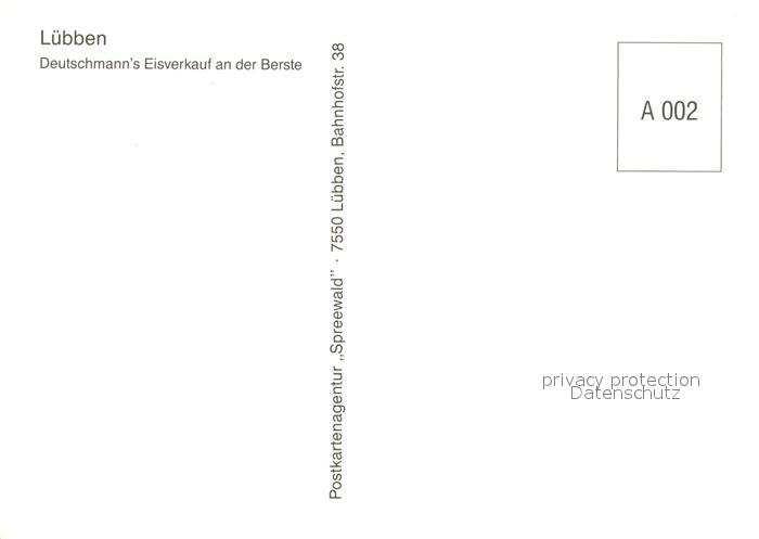 73660424 Luebben Spreewald Deutschmann’s Eisverkauf an der Berste Wasserstrasse postalisch nicht gelaufen Erhaltung siehe scans [FriedD77] KatCode: 11110012061316