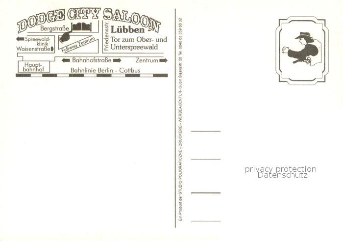 73648042 alte Postkarte Luebben Spreewald Dodge City Saloon Bierzapfen Gastraeume Tanzflaeche postalisch gelaufen Erhaltung siehe scans [WerneD78] KatCode: 11110012061316