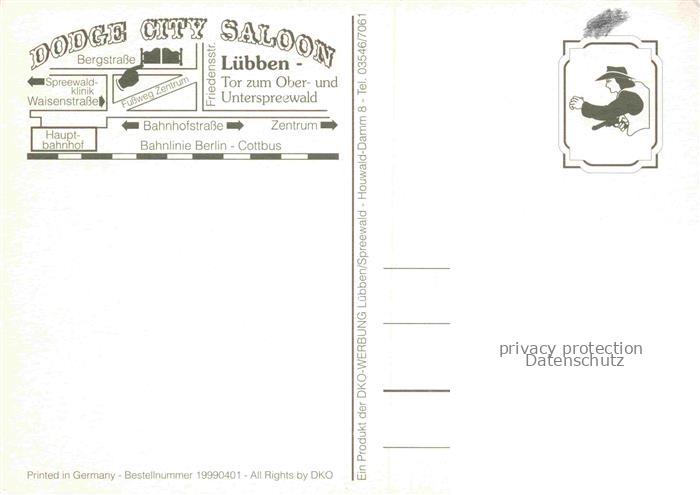 74029229 Luebben Spreewald Dodge City Saloon Country Live-Music Westernspezialitaeten Sommergarten Reiten Kutschfahrt Planwagen postalisch nicht gelaufen Erhaltung siehe scans [FriedD77] KatCode: 11110012061316
