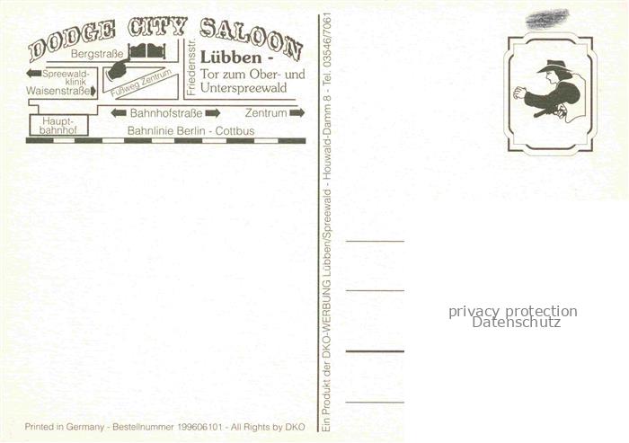 74026806 Luebben Spreewald Dodge City Saloon Country Live Music Westernspezialitaeten Sommergarten postalisch nicht gelaufen Erhaltung siehe scans [FriedD77] KatCode: 11110012061316