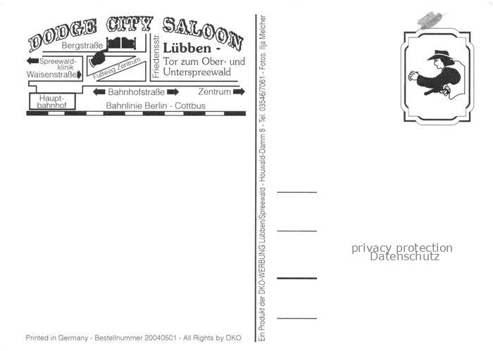74029230 Luebben Spreewald Dodge City Saloon Country Live-Music Westernspezialitaeten Sommergarten Reiten Kutschfahrt Planwagen postalisch nicht gelaufen Erhaltung siehe scans [FriedD77] KatCode: 11110012061316
