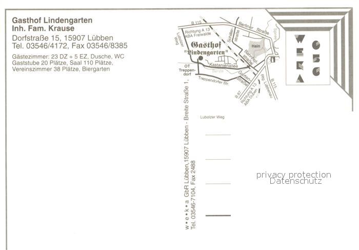 73572112 Luebben Spreewald Gasthof Lindengarten Gartenrestaurant postalisch nicht gelaufen Erhaltung siehe scans [FriedD77] KatCode: 11110012061316