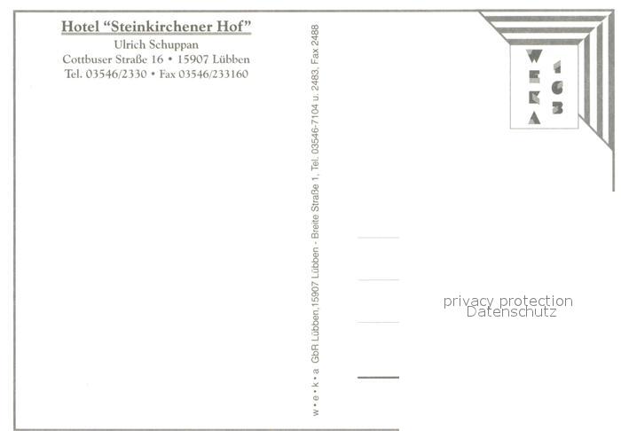 73708041 Luebben Spreewald Hotel Restaurant Steinkirchener Hof Fremdenzimmer postalisch nicht gelaufen Erhaltung siehe scans [FriedD77] KatCode: 11110012061316