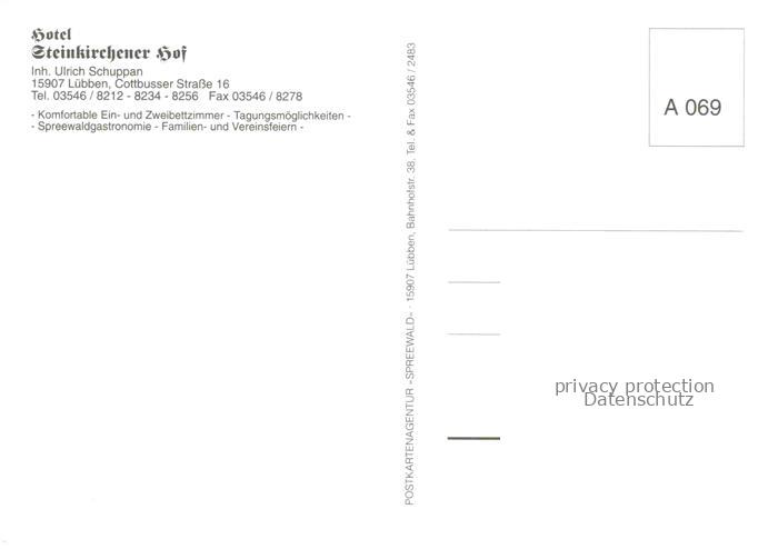 74021400 Luebben Spreewald Hotel Restaurant Steinkirchener Hof Saal Gastraum Fremdenzimmer postalisch nicht gelaufen Erhaltung siehe scans [FriedD77] KatCode: 11110012061316