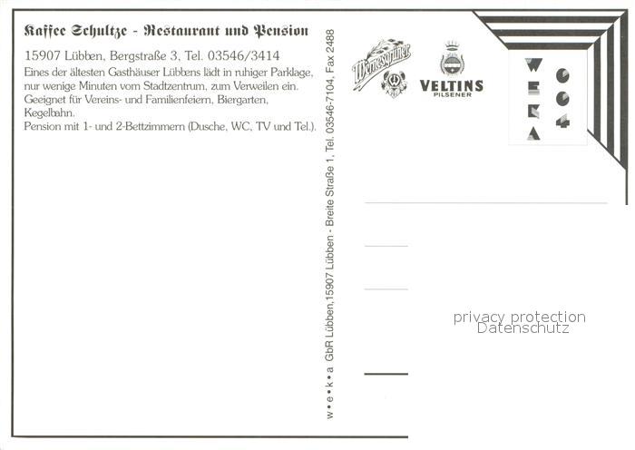 73659693 Luebben Spreewald Kaffee Schultze Restaurant Pension postalisch nicht gelaufen Erhaltung siehe scans [FriedD77] KatCode: 11110012061316