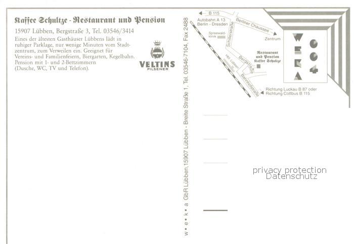 73642443 Luebben Spreewald Kaffee Schultze Restaurant Pension postalisch nicht gelaufen Erhaltung siehe scans [FriedD77] KatCode: 11110012061316