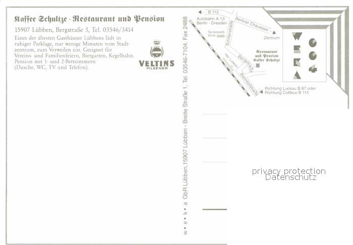 72772043 Luebben Spreewald Kaffee Schultze Restaurant Pension postalisch nicht gelaufen Erhaltung siehe scans [LiesaD40] KatCode: 11110012061316