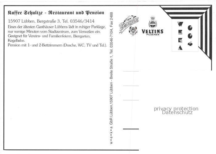 74027687 Luebben Spreewald Kaffee Schultze Restaurant Pension postalisch nicht gelaufen Erhaltung siehe scans [FriedD77] KatCode: 11110012061316