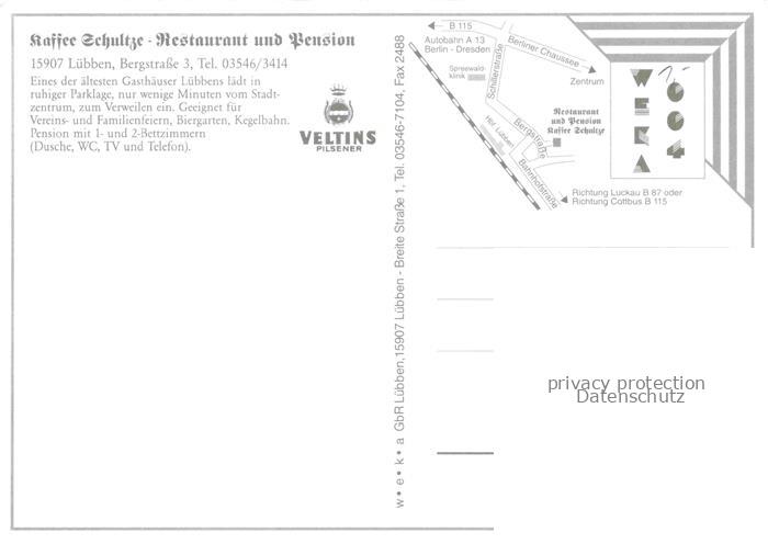 74043788 Luebben Spreewald Kaffee Schultze Restaurant Pension Gartenterrasse postalisch nicht gelaufen Erhaltung siehe scans [FriedD77] KatCode: 11110012061316
