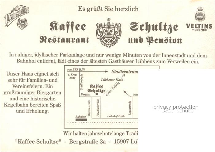 73755230 Luebben Spreewald Kaffee Schultze Restaurant und Pension Terrasse postalisch nicht gelaufen Erhaltung siehe scans [WerneD78] KatCode: 11110012061316