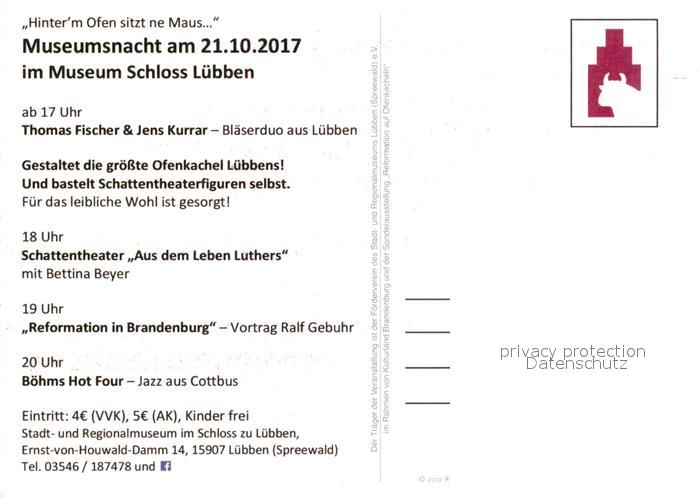 73164101 Luebben Spreewald Museumsnacht im Museums-Schloss postalisch nicht gelaufen Werbekarte (keine Postkarte) Erhaltung siehe scans [LiesaD40] KatCode: 11110012061316