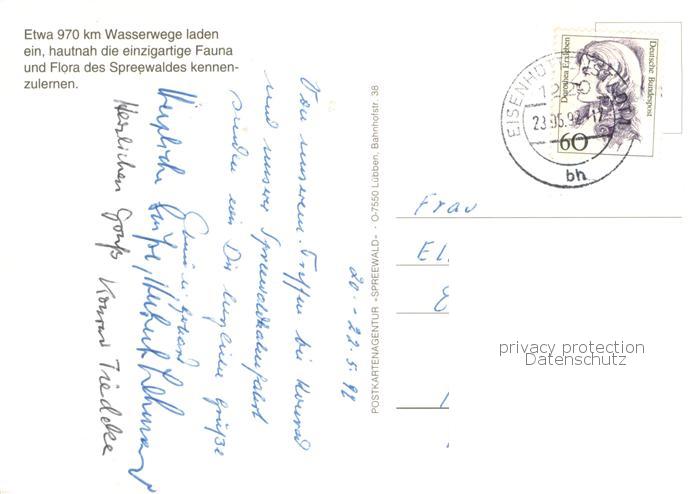 73778837 alte Postkarte Luebben Spreewald Paradies fuer Wasserwanderer Spreewaldhaus postalisch gelaufen Erhaltung siehe scans [FriedD77] KatCode: 11110012061316