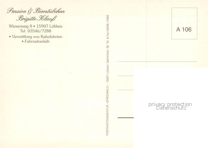 73716410 Luebben Spreewald Pension und Bierstuebchen Klauss Gaststube Terrasse Bootspartie postalisch nicht gelaufen Erhaltung siehe scans [WerneD78] KatCode: 11110012061316