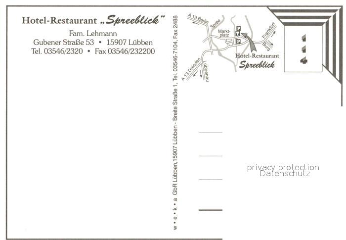 73572102 Luebben Spreewald Restaurant Hotel Spreeblick Fremdenzimmer Natur postalisch nicht gelaufen Erhaltung siehe scans [FriedD77] KatCode: 11110012061316