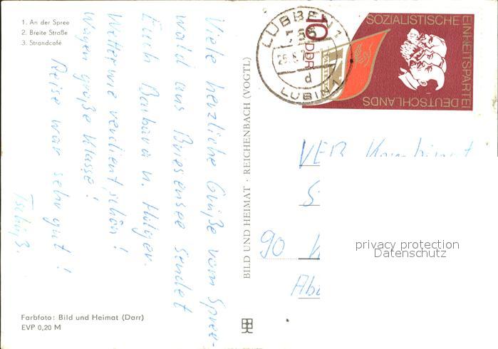 72372798 alte Postkarte Luebben Spreewald Spree Breite Strasse Strandcafe postalisch gelaufen Erhaltung siehe scans KatCode: 11110012061316