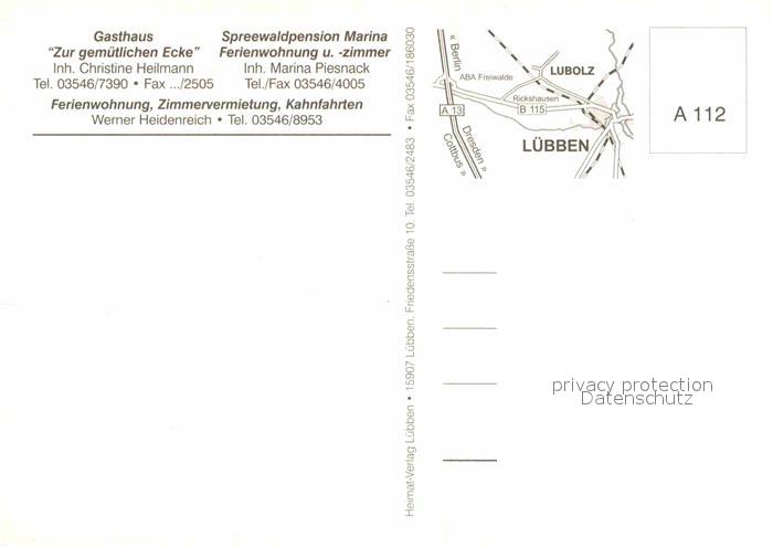 72655652 Luebben Spreewald Spreewald-Kahnfahrt Gasthaus Zur gemuetlichen Ecke postalisch nicht gelaufen Erhaltung siehe scans [AndreD76] KatCode: 11110012061316