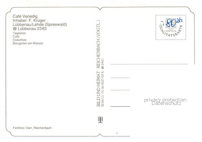 73859040 Luebbenau Spreewald Cafe Venedig Spreewald Bootspartie postalisch nicht gelaufen Erhaltung siehe scans [WerneD78] KatCode: 11110012066196