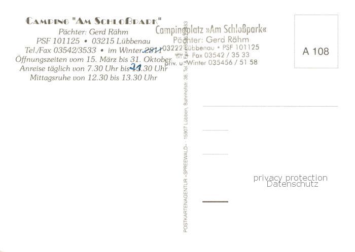 73804464 Luebbenau Spreewald Camping Am Schlosspark postalisch nicht gelaufen Erhaltung siehe scans [WerneD78] KatCode: 11110012066196