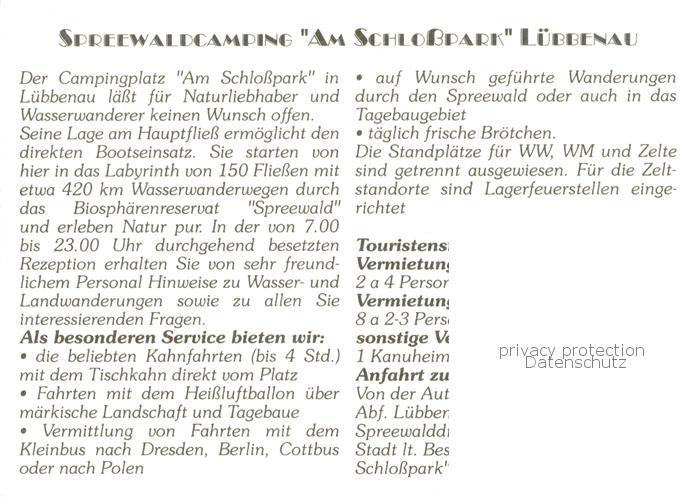 73754949 Luebbenau Spreewald Gebietskarte Bootspartie Spreewaldcamping Am Schlosspark postalisch nicht gelaufen Erhaltung siehe scans [FriedD77] KatCode: 11110012066196