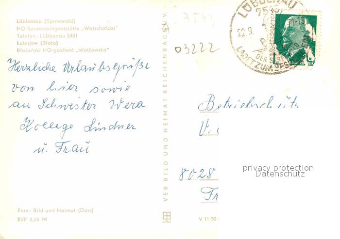72925053 alte Postkarte Luebbenau Spreewald HO Spreewaldgaststaette Wotschofska postalisch gelaufen Erhaltung siehe scans [WerneD78] KatCode: 11110012066196